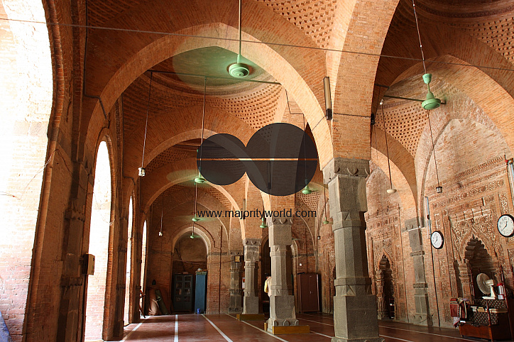 The interior of Bagha Mosque, at Bagha union, about 25 miles southeast of Rajshahi town. This brick; built mosque, now a protected monument of the Department of Archaeology, Bangladesh, is an oblong structure measuring externally about 23.16 meter by 12.8