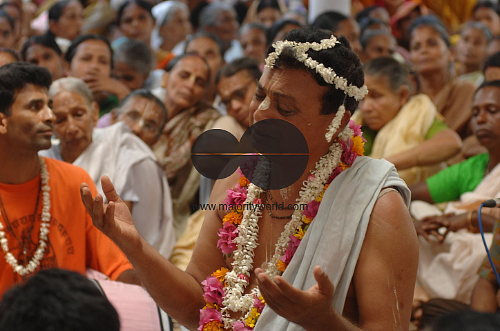 A Kirtanja (Singer) singing Baishnav religious songs known as Kirtan at Radha Govinda Jeo’s temple in Pakulla, Tangail , Bangladesh. May 8, 2007.