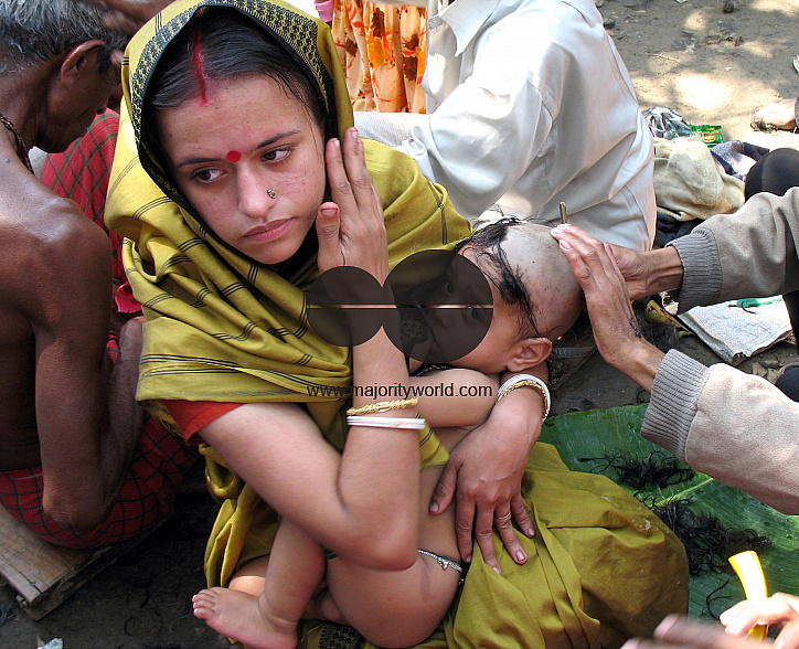 The Hindu festival, Shiva Chaturdashi, is held every year in February when thousands of pilgrims make their way to pay their respects. Boys and men typically shave their heads and take baths to refresh and cleanse themselves. Sitakundu, Chittagong, Bangladesh. 2007.