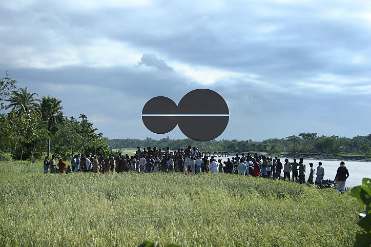 Burrial of five dead bodies (victims of SIDR) taking place by the river next to a paddy field in Guara,Khulna, Bangladesh. November 17, 2007.