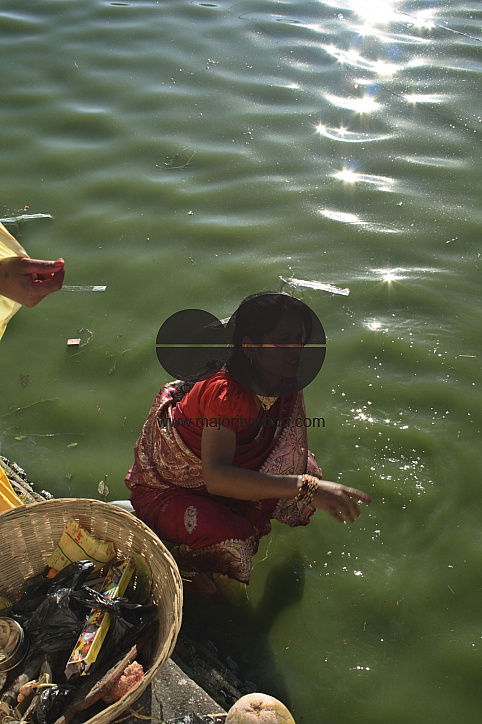 The Chath puja, a traditional Nepalese worship through which people pay tribute and seek blessings of the Sun and River at Queen's pond in Kathmandu, Nepal. November 16, 2007.