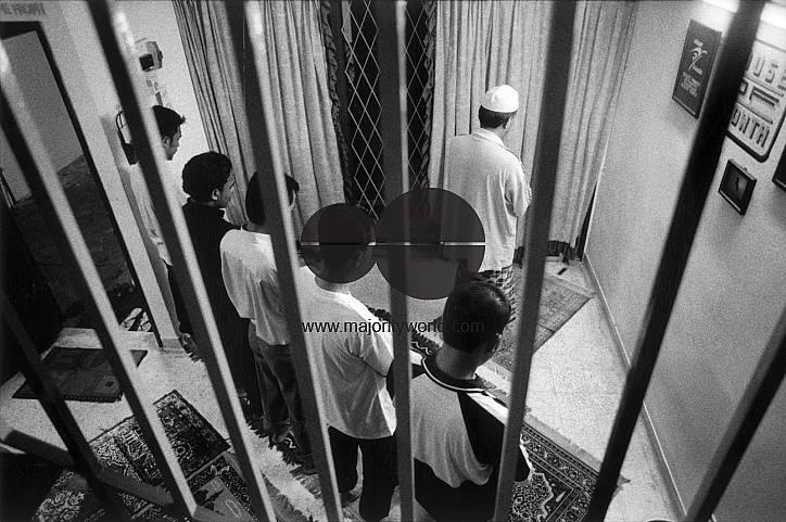 Marzuki Othman, project manager of the Servan Kasih re-entry programme for recovering drug addicts, leads the group in prayers. Part of the international Positive Lives project (www.positivelives.org) that documents the impact of the global HIV/AIDS epidemic. Kuala Lumpur, Malaysia, 2001...'Positive Lives, Malaysia'