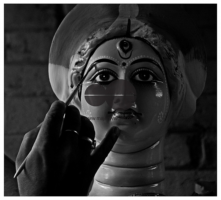 The annual Durgapuja is the biggest religious festival of the Hindu people in Bangladesh. An artist paints an idol of the Goddess Durga. Dewanbazar, Chittagong, Bangladesh. October 12, 2007.