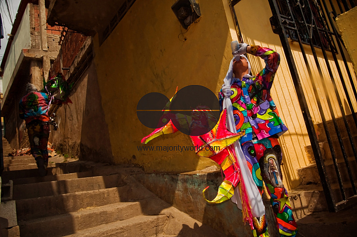 • Description: DANCING DEVILS OF NAIGUATA.The Devils of Naiguata, dance in the Vargas state area, are identified by painting their own costumes, wear trousers and a white shirt, painted with crosses, stripes and circles, figures that prevent the evil of mastery. The masks are mostly marine animals. They crossed scapulars, blessed palm crosses and crucifixes. There are no layer or foreman..Naiguata, Vargas State - Venezuela 2010..(Copyright © Aaron Sosa)
