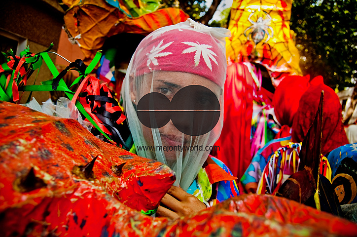 • Description: DANCING DEVILS OF NAIGUATA.The Devils of Naiguata, dance in the Vargas state area, are identified by painting their own costumes, wear trousers and a white shirt, painted with crosses, stripes and circles, figures that prevent the evil of mastery. The masks are mostly marine animals. They crossed scapulars, blessed palm crosses and crucifixes. There are no layer or foreman..Naiguata, Vargas State - Venezuela 2010..(Copyright © Aaron Sosa)