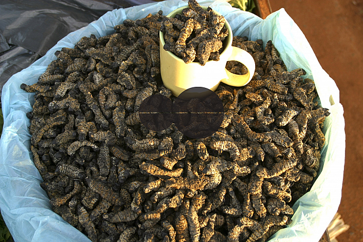mopane worms, traditional Venda food of the Vhavenda people, Limpopo Province, known as 'American crunchies', mopane worms are a traditional food in Venda and provide the locals with a highly nutritious source of protein. They are found on mopane trees no