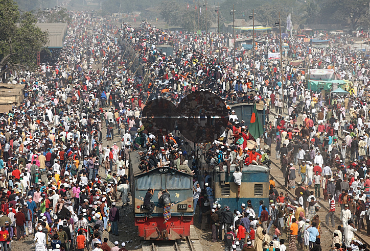 Thousands of Muslim devotees return home after attending Bishwa Ijtema on the bank of the Turag river, in Tongi, Bangladesh. January 24, 2010.
