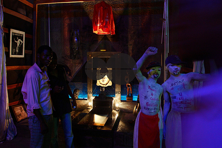 Young revelers unwind to the tunes of Femi Kuti, son of the late Afrobeat legend Fela Kuti, around the temple in Afrika Shrine where the regular Sunday jump night show takes place. Lagos, Nigeria. December 17, 2006.