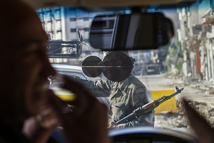 Militia checkpoint at the entrance to the old neighborhood in Homs. After the reclamation of Homs, the militia forces were responsible to maintain security and control the situation for entering and leaving gates of the city. on 2014/May/19