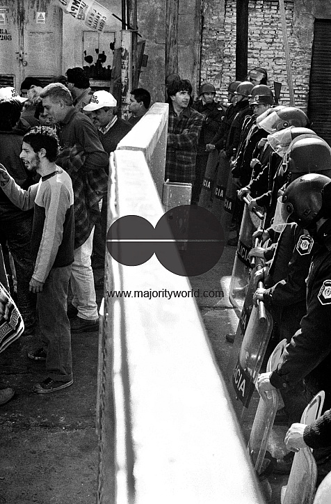 Once the factory premises are legally in the hands of the workers, Òjudicial officialsÓ try to take away the wool that was expropriated together with the premises. Cooperativa Lavalan, Avellaneda, Buenos Aires, Argentina. September 3 2002.