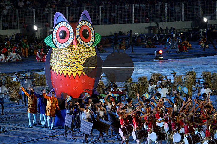 Performers display various cultural activities during the inauguration of ICC Cricket World Cup 2011, at Bangabandhu National Stadium, on 17th February 2011. Dhaka, Bangladesh. The match will be jointly held in Bangladesh, Sri Lanka and India from 19th Fe