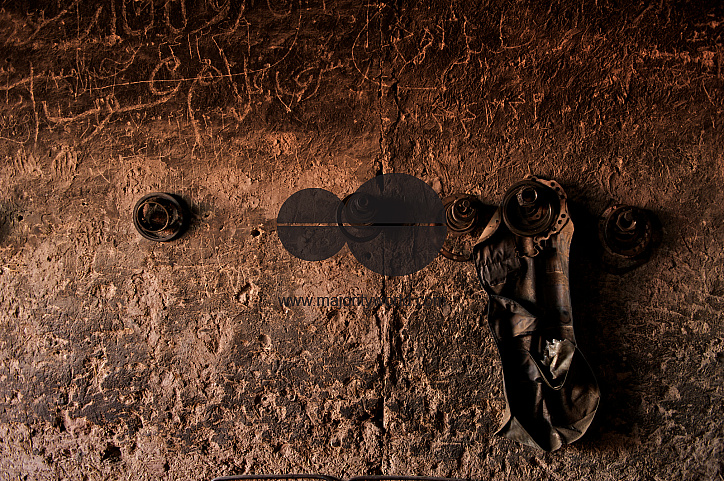 Auto parts and tools hung on the wall of a workshop that employs children as workers, in Darwaza-e-Khusk, Herat, Afghanistan. May 6, 2009.