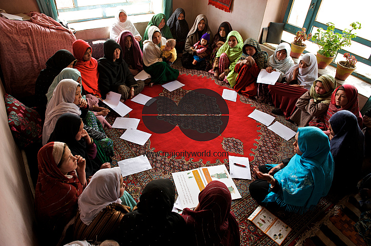A group of women attend the monthly Village Health Committee meeting, in the village of Surkhjoi, in Fuladi valley, Bamyan province, Afghanistan. May 11, 2009.