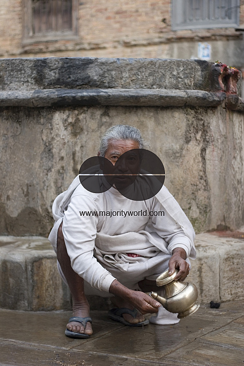 Model Release No: 048.Mujya Maharjan is a priest. In Harisiddhi where he grew up, every household gives up one son for priesthood.December 4, 2007, Lalitpur, Kathmandu, Nepal.