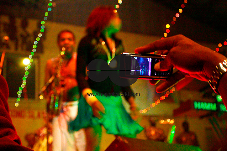 Femi Kuti’s performance being captured with a phone camera at the Afrika Shrine during regular Sunday jump night show where revelers come to unwind. Femi Kuti is the son of the late Fela Kuti, the Afrobeat legend. Lagos, Nigeria, 2006..