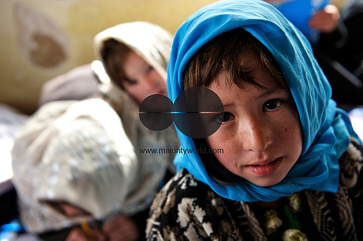 A young student in Bam Sarai Government Primary school in the central Bamyan Province, Afghanistan. Over 650 girls and boys, many of the ethnic Hazara minority, attend the school in two shifts. May 12, 2009.
