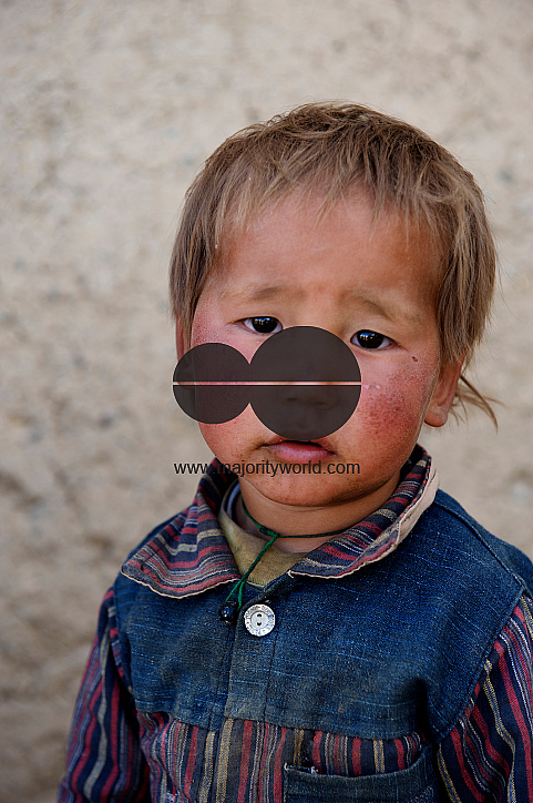 A little girl with frostbitten cheeks in the village of Rag-e-Shad, on the outskirts of Bamyan city, central Bamyan Province, Afghanistan. May 11, 2009.