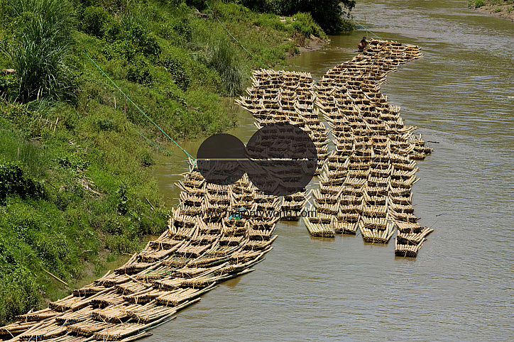 Stacks of bamboo ferried in rafts across the Kachalong River in Rangamati, one of the hill districts under Chittagong Division of Bangladesh. June 6, 2009.