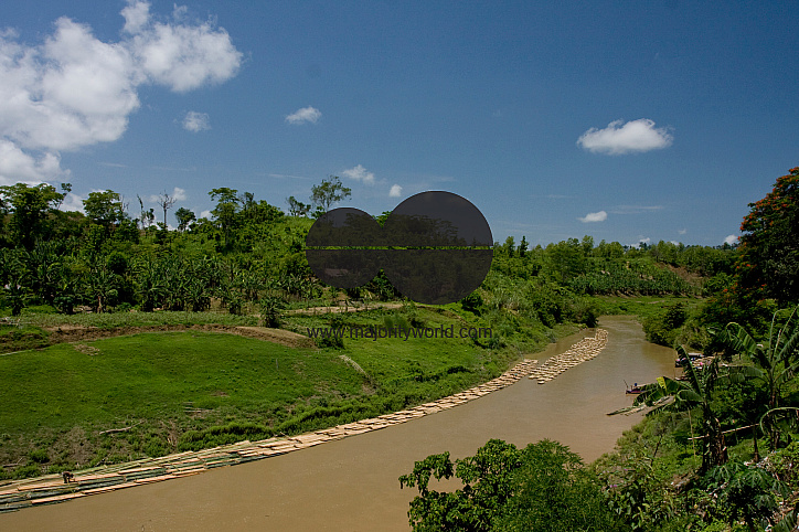 Stacks of bamboo ferried in rafts across the Kachalong River in Rangamati, one of the hill districts under Chittagong Division of Bangladesh. June 6, 2009.