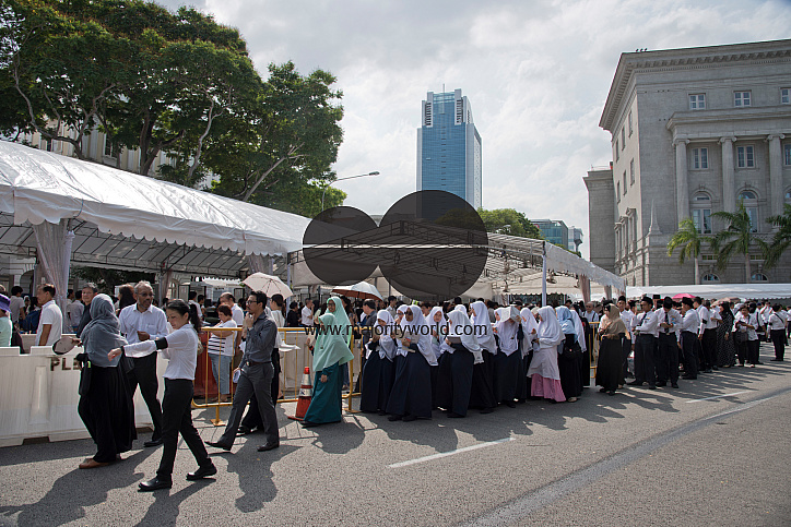A huge queue has formed in central Singapore as thousands wait to pay tribute to late statesman Lee Kuan Yew lying in state in parliament.