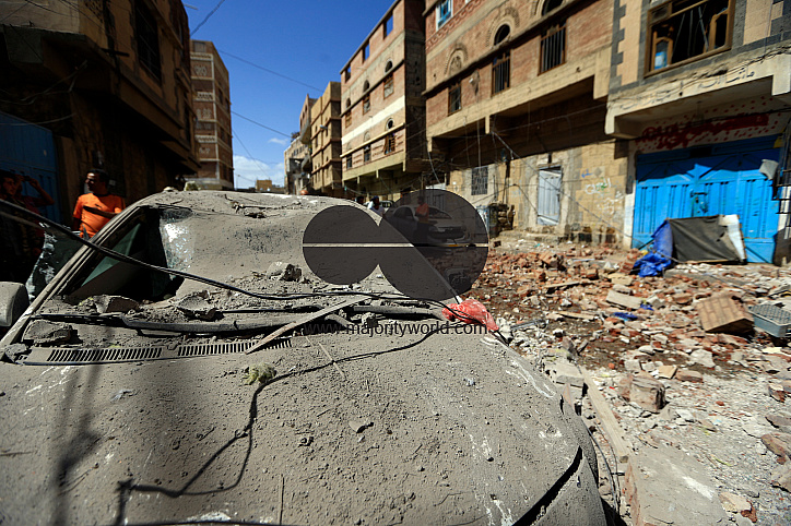 Yemenis sift the rubble of a heavily damaged building following reported Saudi-led coalition air strikes in the Yemeni capital Sanaa on May 16, 2019.