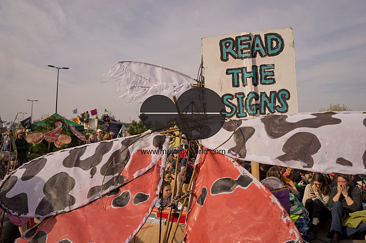 Extinction Rebellion activists blocking Waterloo bridge in central London to demand action from government against climate change. London,England,UK