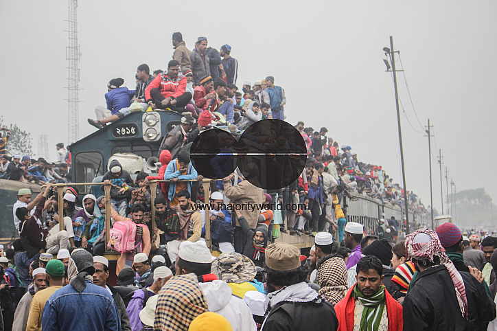 January 12,2020 Dhaka, Bangladesh : Muslims travel on overcrowded trains after attending the final prayer of Bishwa Ijtema at Tongi near Dhaka, considered the worldâs second largest Muslim gathering after the hajj of Mecca.