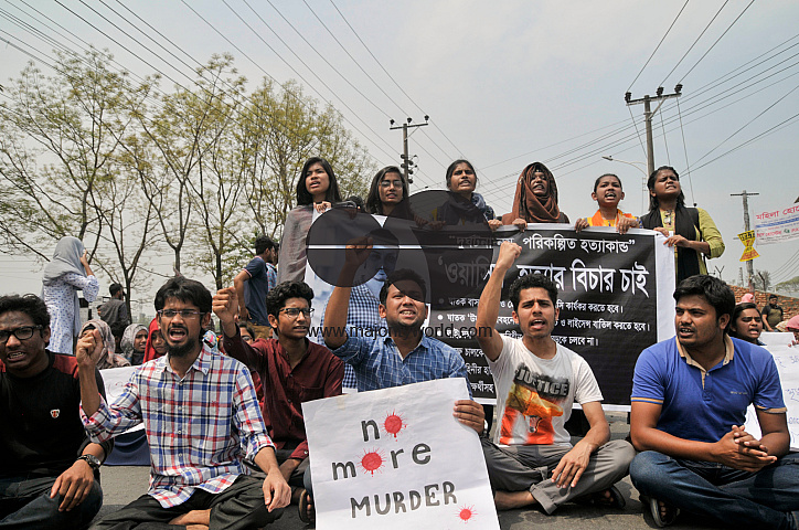 March 27,2019 Sylhet, Bangladesh: Students of different schools, colleges and universities of Sylhet, Bangladesh took the position in city road, protesting the death of Ghori Mohammad Wasim Abbas, 21, a student of Sylhet Agricultural University. Wasim intentionally murdered after being pushed off a bus by its conductor and crushed under the rear wheels in Sylhet- Dhaka Highway on 23 March last.