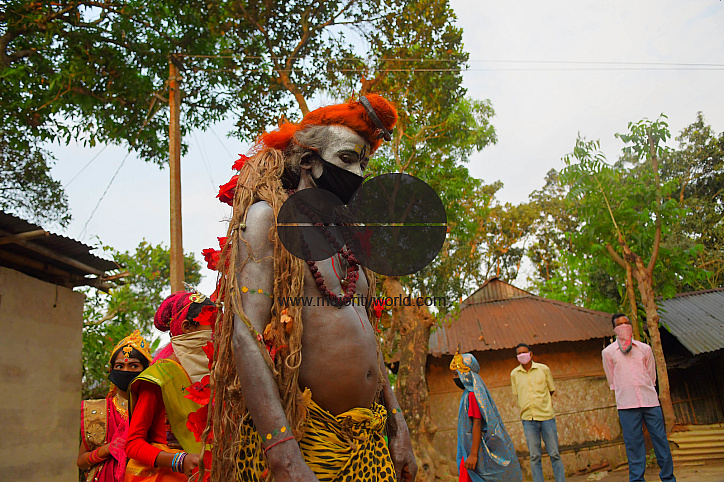 • Description: AGARTALA,TRIPURA,INDIA,12-04-2020 : Folk artists are performing the rituals of Shiber Gajan with covering the face with cloth and mask ,  during a government-imposed nationwide lockdown as a preventive measure against the COVID-19, in the outskirts of Agartala, capital of the Northeastern state of Tripura, India. PHOTO BY-ABHISEK SAHA