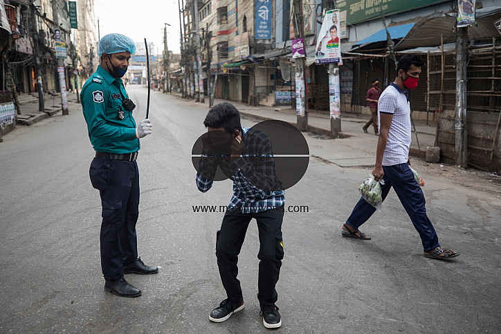 The law-enforcing agencies have swung into action to stop people being out from home. There have been some incidents of people being beaten for getting out to home without needs amid concerns of corona virus pandemic in Dhaka, Bangladesh in Dhaka on March