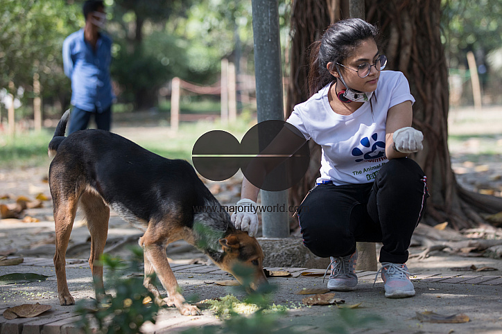 Volunteers from Robinhood Animal Rescuer feeds street dogs amid concerns of corona virus pandemic in Dhaka, Bangladesh on April 01, 2020. Bangladesh has confirmed 54 cases, with 6 deaths due to corona virus (COVID-19), According to IEDCR officials. Photo