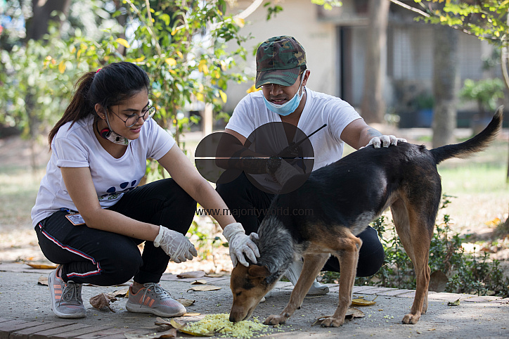 Volunteers from Robinhood Animal Rescuer feeds street dogs amid concerns of corona virus pandemic in Dhaka, Bangladesh on April 01, 2020. Bangladesh has confirmed 54 cases, with 6 deaths due to corona virus (COVID-19), According to IEDCR officials. Photo