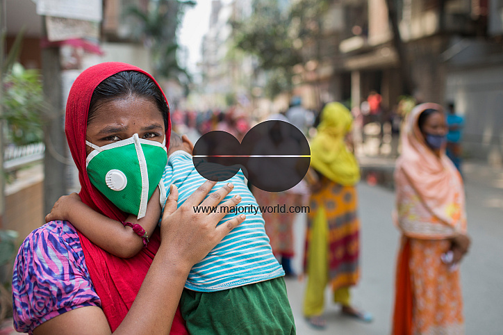 The mother with her child has come to collect relief distributed by the Army along with the Councilor. Mohammadpur, Dhaka, Banglaesh.