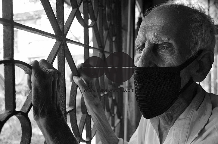 The sad old man in the time of lockdown for COVID-19 epidemic looking at the abandoned streets through his melancholic eyes, Nabagram; Hooghly. West Bengal; India.