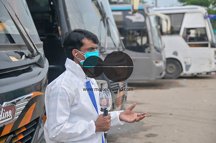 Bangladeshi News TV Channel reporter, covering his news with protection kit in the street of Sylhet, Bangladesh amid the Covid-19 pandemic