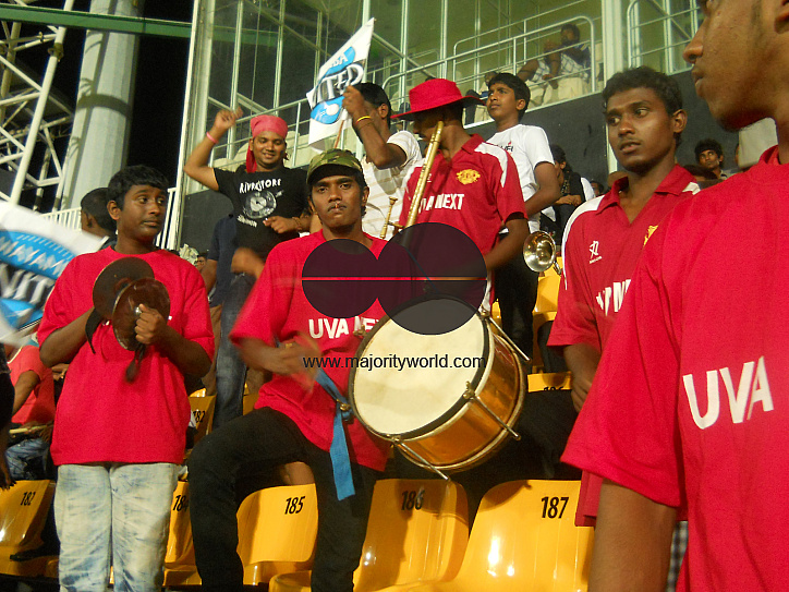 Fans enjoying and supporting their team UVA Next, during the 1st Sri Lanka Premier League (SLPL) in 2012. UVA Next were the champions of the League. R. Premadasa Stadium, Colombo, Sri Lanka.