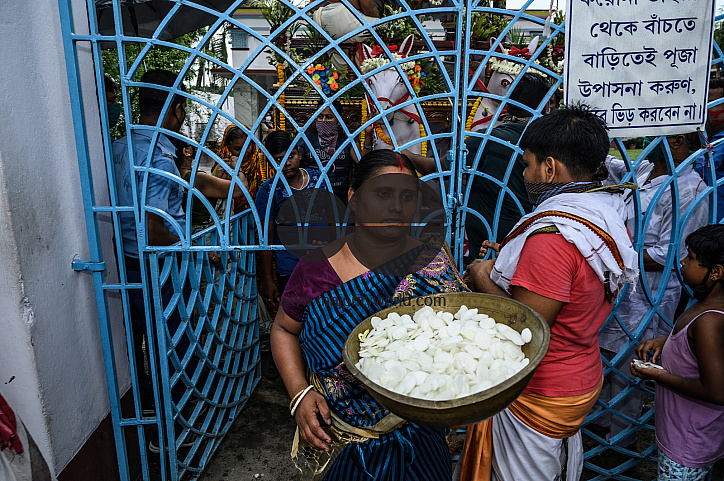 Ratha Jatra also referred to as Ratha Yatra or Chariot festival, is a public procession in a chariot. Sri Sri Krishna Roy's Rath Jatra 2020 (Chariot ride of lord Krishna) was celebrated in a slightly different way this year. Due to COVID - 19, the chariot of Krishna Roy of Tehatta could not get on the highway, but the procession in the temple premises was observed according to the rules and regulations. Tehatta, Nadia, West Bengal; India.