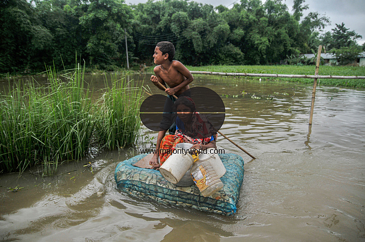 The area is submerged with water due the recent floods from the heavy rainfall triggered during the monsoon season over the last few days. Banglades