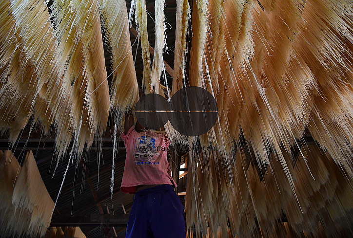 • Description: A worker arranging rice vermicelli called ‘Seviyan’ at a vermicelli factory, on the eve of Eid festival. There is a big demand for Vermicelli, during the Eid festival. Muslims use vermicelli to make traditional festive food. Agartala, Tripura, India.