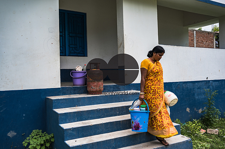 The novel Coronavirus pandemic has spread across the world. There is a lack of quarantine space for workers from outside West Bengal. After staying at the Quarantine centre for 14 days, some workers are returning home with their accessories in Tehatta, Nadia, West Bengal; India.