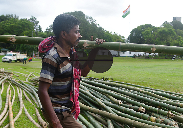 • Image Description: Laborers are making a temporary stage, for the VIPs to watch the Independence Day celebrations. At Assam Rifles ground in Agartala, Tripura, India.