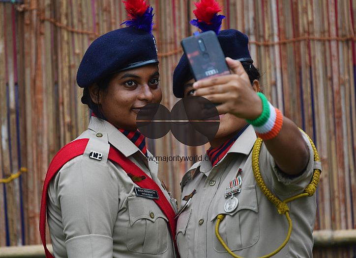 Police and other paramilitary personnel are capturing photographs and selfies during the Indian Independence day celebrations at Assam Rifles ground, Agartala, Tripura, India.