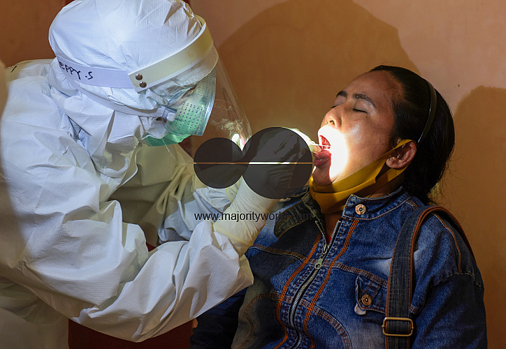 Medical personnel are conducting rapid test and swap checks on several market vendors in Yogyakarta. Covid-19 victims experienced an increase which mostly came from traditional market clusters. The Yogyakarta city government is increasing testing on traders, traditional market visitors and spraying disinfectants to avoid the spread of covid-19. Yogyakarta, Indonesia.