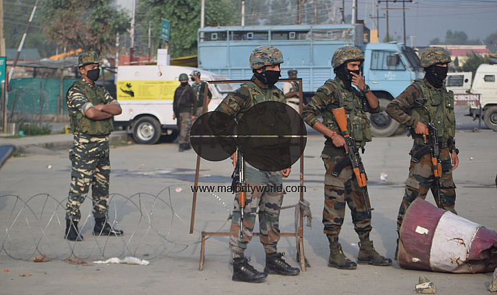 • Image Description: Security forces at Pantha chowk in the outskirts of Srinagar. Three militants and one policeman were killed in an encounter between the two groups. Srinagr, India.