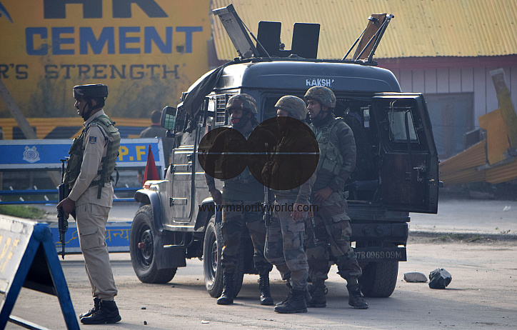 • Image Description: Security forces at Pantha chowk in the outskirts of Srinagar. Three militants and one policeman were killed in an encounter between the two groups. Srinagr, India.