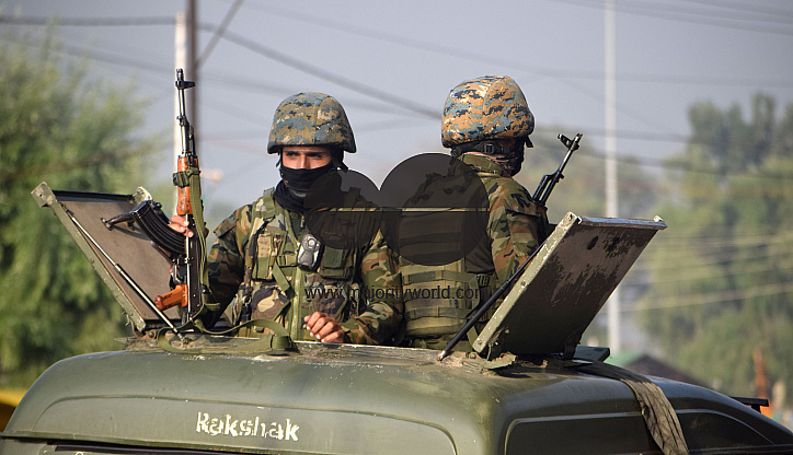 • Image Description: Security forces at Pantha chowk in the outskirts of Srinagar. Three militants and one policeman were killed in an encounter between the two groups. Srinagr, India.