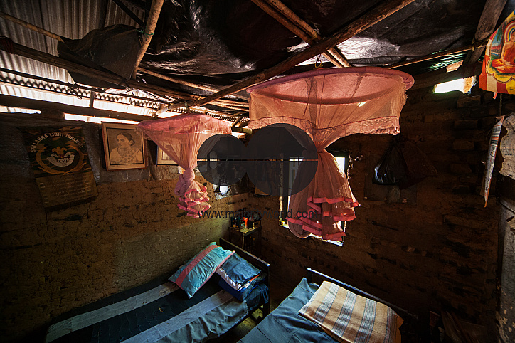 Home of T.H. Piyadasa, 62 years old, and lives with his 60 year wife. He sold fresh fish on his bicycle but was forced to give up when his asthma got very bad. Life is very difficult for the couple who depend on a small government paid amount and selling fruits grown in the garden. Matara, Sri Lanka.