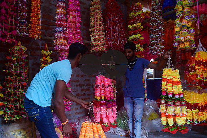 • Description: People are arranging garlands for sale made out of different kinds of plastic at a garland factory, ahead of the Durga Puja in the outskirts of Agartala, Tripura, India.