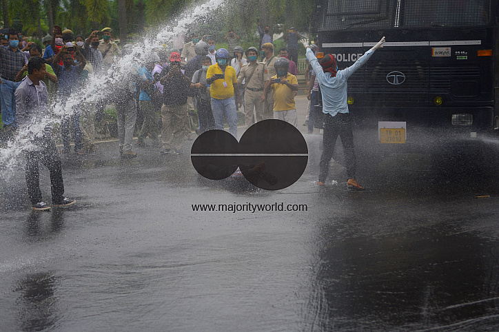 • Image Description: Terminated teachers at a protest rally in front of the secretariat are asking their jobs and livelihood back. This happen after the education minister failed to solve the problem. Protesters were injured in the process due to police intervention. Agartala