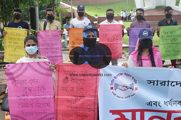 • Image Description: People protests against the rape cases across the country, demanded maximum punishment for the rapists. This protest rally was organized by Nirman Uddokta Unnayan Sunghotan. Sylhet, Bangladesh.